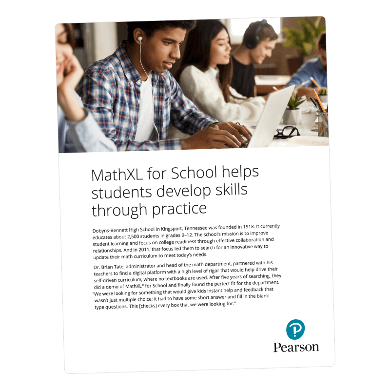 Seeking a rigorous digital platform for students, Dobyns-Bennett High School chose MathXL for School®. With a range of resources, students use it for practice, homework, pre-testing/retesting, quizzes, remediation, and study plans. The results have been extraordinary and consistent for eight years.